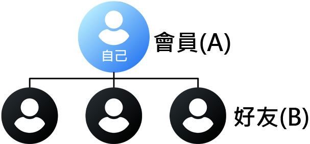 若是你的好友也加入這個計畫,好友將可以得到他第一層所有好友 "千分之一" 投注回饋金。